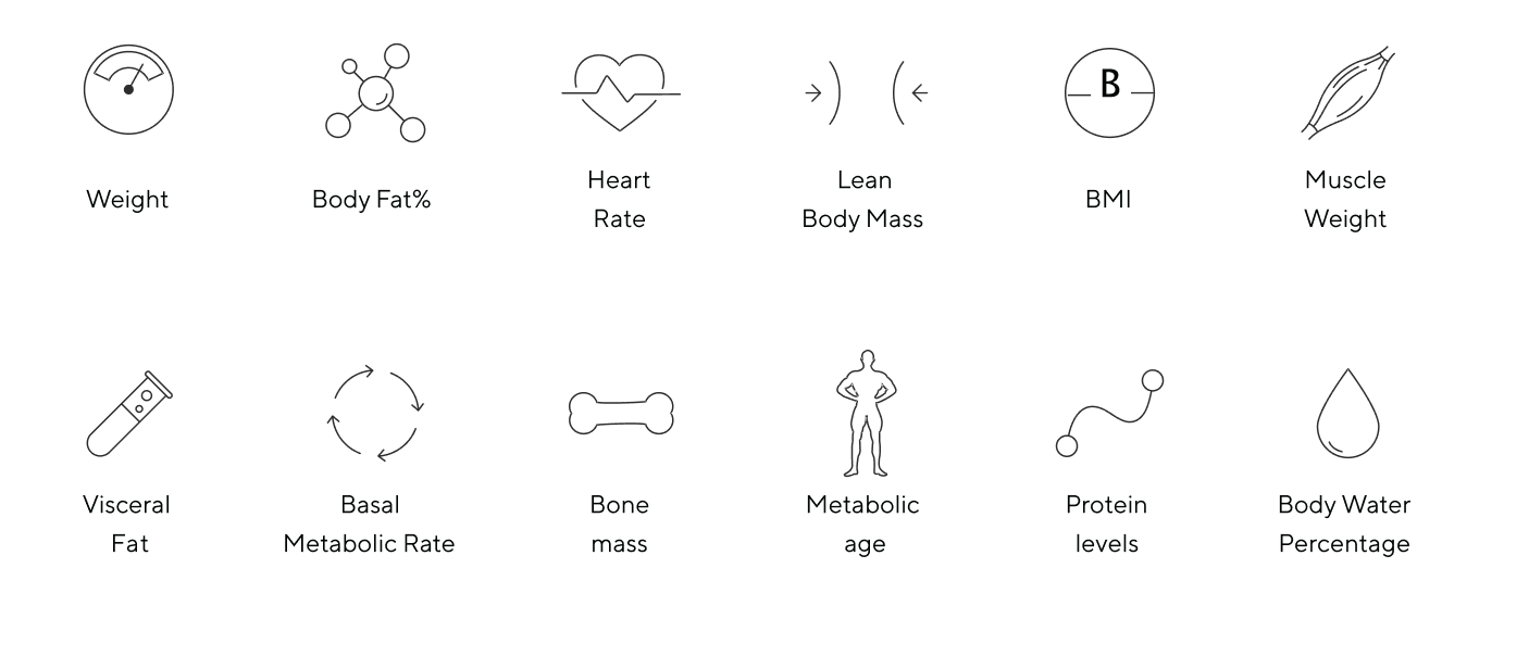 Health is measured by more than just weight. Wyze Scale also measures body fat, lean body mass, and even your heart rate. With 12 metrics tracked, you get a full picture of your health.